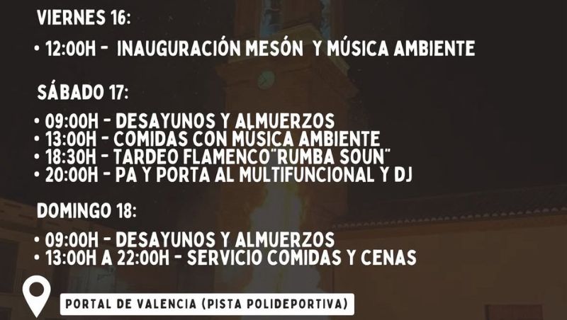 Uno de los grandes atractivos será el Mesón Mascarell, instalado en el Portal de València, que abrirá desde el viernes con música ambiente, almuerzos, comidas, cenas, tardeo flamenco y DJ. El espacio ofrecerá servicio ininterrumpido durante los tres días, convirtiéndose en un punto de encuentro para disfrutar de la gastronomía local y del ambiente festivo.